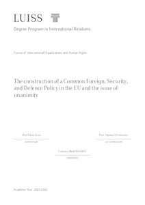 Blotti, Ludovica (A.A. 2021/2022) The construction of a common foreign, security and defence policy in the EU and the issue of unanimity. Tesi di Laurea in International organization and human rights, Luiss Guido Carli, relatore Elena Sciso, pp. 169. [Master's Degree Thesis]