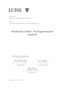 Taurino, Gioele (A.A. 2023/2024) Stochastic choice: an experimental analysis. Tesi di Laurea in Economia dell'incertezza e dell'informazione, Luiss Guido Carli, relatore Daniela Teresa Di Cagno, pp. 111. [Master's Degree Thesis]