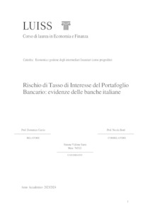 Vallone Sarra, Simone (A.A. 2023/2024) Rischio di tasso di interesse del portafoglio bancario: evidenze delle banche italiane. Tesi di Laurea in Economia e gestione degli intermediari finanziari (corso progredito), Luiss Guido Carli, relatore Domenico Curcio, pp. 82. [Master's Degree Thesis]