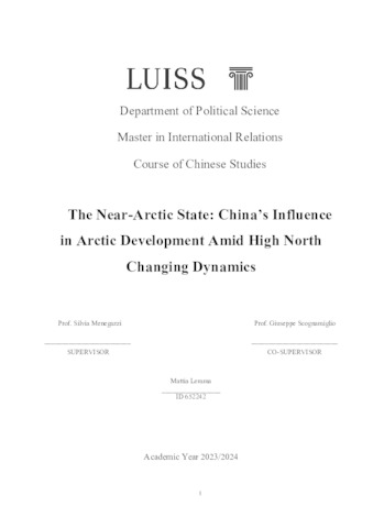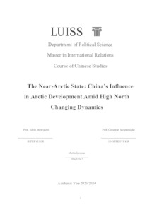 Lemma, Mattia (A.A. 2023/2024) The near-Arctic State: China’s influence in Arctic development amid high North. Tesi di Laurea in Chinese studies, Luiss Guido Carli, relatore Silvia Menegazzi, pp. 125. [Master's Degree Thesis]