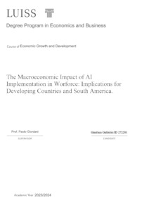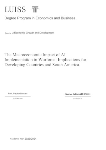 Galderisi, Gianluca (A.A. 2023/2024) The macroeconomic impact of AI implementation in worforce: implications for developing countries and South America. Tesi di Laurea in Economic growth and development, Luiss Guido Carli, relatore Paolo Giordani, pp. 42. [Master's Degree Thesis]