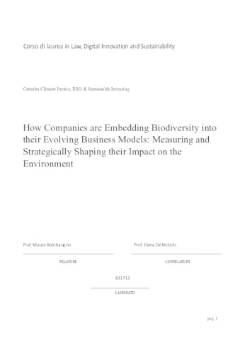 Di Dino, Lorenzo (A.A. 2024/2025) How companies are embedding biodiversity into their evolving business models: measuring and strategically shaping their impact on the environment. Tesi di Laurea in Climate justice, ESG & sustainable investing, Luiss Guido Carli, relatore Mauro Bombacigno, pp. 64. [Master's Degree Thesis]