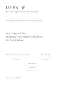 Ullo, Francesca (A.A. 2024/2025) From farm to table: enhancing agricultural sustainability and social justice. Tesi di Laurea in Regulation of innovation & sustainable development, Luiss Guido Carli, relatore Sofia Hina Fernandes Da Silva Ranchordas, pp. 90. [Master's Degree Thesis]