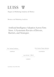 Venturi, Luca (A.A. 2024/2025) Artificial intelligence adoption across firm sizes: a systematic review of drivers, barriers and strategies. Tesi di Laurea in Business and marketing analytics, Luiss Guido Carli, relatore Andrea De Mauro, pp. 106. [Master's Degree Thesis]