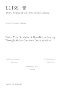 Mariani, Chiara (A.A. 2024/2025) Fasten your seatbelts: a data-driven journey through airline customer dissatisfaction. Tesi di Laurea in Performance marketing, Luiss Guido Carli, relatore Ernesto Cardamone, pp. 97. [Master's Degree Thesis]