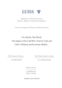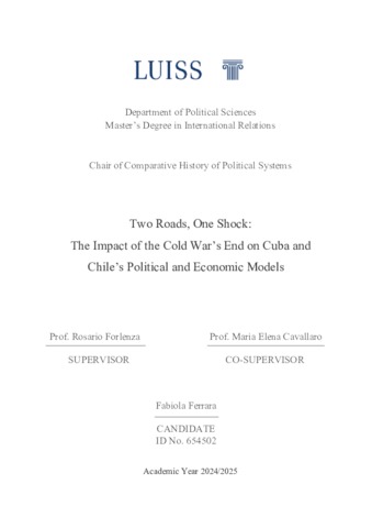 Ferrara, Fabiola (A.A. 2024/2025) Two roads, one shock: the impact of the cold war’s end on Cuba and Chile’s political and economic models. Tesi di Laurea in Comparative history of political systems, Luiss Guido Carli, relatore Rosario Forlenza, pp. 112. [Master's Degree Thesis]