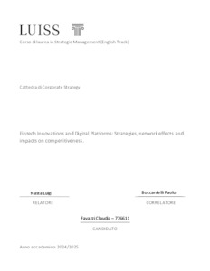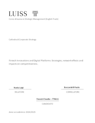 Favazzi, Claudia (A.A. 2024/2025) FinTech innovations and digital platforms: strategies, network effects and impacts on competitiveness. Tesi di Laurea in Corporate strategy, Luiss Guido Carli, relatore Luigi Nasta, pp. 61. [Master's Degree Thesis]