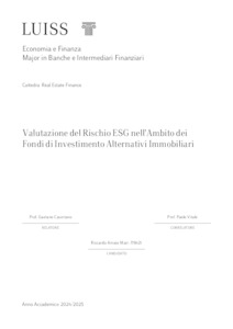 Amato, Riccardo (A.A. 2024/2025) Valutazione del rischio ESG nell'ambito dei fondi di investimento alternativi immobiliari. Tesi di Laurea in Real estate finance, Luiss Guido Carli, relatore Gaetano Casertano, pp. 142. [Master's Degree Thesis]