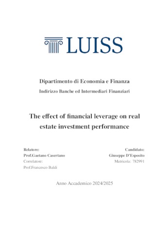 D'Esposito, Giuseppe (A.A. 2024/2025) The effect of financial leverage on real estate investment performance. Tesi di Laurea in Real estate finance, Luiss Guido Carli, relatore Gaetano Casertano, pp. 98. [Master's Degree Thesis]