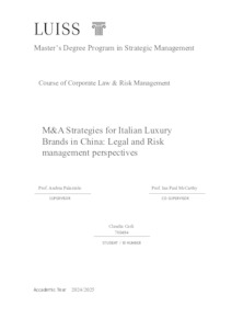 Carli, Claudia (A.A. 2024/2025) M&A strategies for Italian luxury brands in China: legal and risk management perspectives. Tesi di Laurea in Corporate law & risk management, Luiss Guido Carli, relatore Andrea Palazzolo, pp. 159. [Master's Degree Thesis]