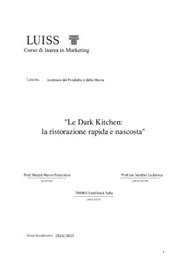 Gentilozzi, Sofia (A.A. 2024/2025) Le Dark Kitchen: la ristorazione rapida e nascosta. Tesi di Laurea in Gestione del prodotto e della marca, Luiss Guido Carli, relatore Marco Francesco Mazzù, pp. 39. [Master's Degree Thesis]