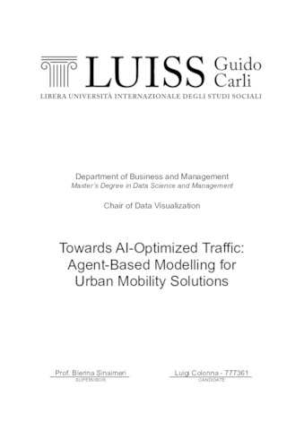 Colonna, Luigi (A.A. 2024/2025) Towards AI-optimized traffic: agent-based modelling for urban mobility solutions. Tesi di Laurea in Data visualization, Luiss Guido Carli, relatore Blerina Sinaimeri, pp. 60. [Master's Degree Thesis]