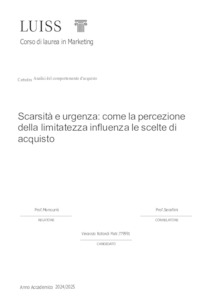 Rotondi, Vincenzo (A.A. 2024/2025) Scarsità e urgenza: come la percezione della limitatezza influenza le scelte di acquisto. Tesi di Laurea in Analisi del comportamento di acquisto, Luiss Guido Carli, relatore Luigi Monsurro, pp. 89. [Master's Degree Thesis]