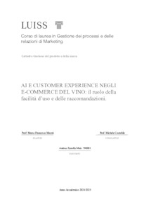 Zarrella, Andrea (A.A. 2024/2025) AI e customer experience negli e-commerce del vino: il ruolo della facilità d’uso e delle raccomandazioni. Tesi di Laurea in Gestione del prodotto e della marca, Luiss Guido Carli, relatore Marco Francesco Mazzù, pp. 76. [Master's Degree Thesis]