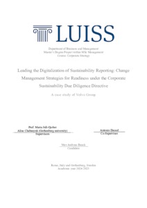 Banck, Max Andreas (A.A. 2024/2025) Leading the digitalization of sustainability reporting: change management strategies for readiness under the corporate sustainability due diligence directive: a case study of Volvo Group. Tesi di Laurea in Corporate strategy, Luiss Guido Carli, relatore Maria Jell-Ojobor, pp. 79. [Master's Degree Thesis]