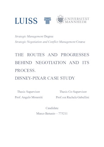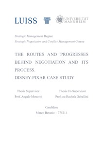 Betunio, Marco (A.A. 2024/2025) The routes and progresses behind negotiation and its process: Disney-Pixar case study. Tesi di Laurea in Strategic negotiation and conflict management, Luiss Guido Carli, relatore Amgelo Monoriti, pp. 86. [Master's Degree Thesis]