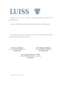Crapanzano Mazzone, Sara (A.A. 2024/2025) The change in international assignment practices as a consequence of the digital revolution and climate change awareness. Tesi di Laurea in Global organization design and HRM, Luiss Guido Carli, relatore Luca Giustiniano, pp. 92. [Master's Degree Thesis]