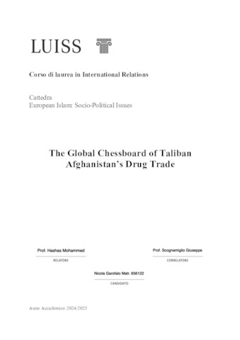 Garofalo, Nicola (A.A. 2024/2025) The global chessboard of taliban Afghanistan’s drug trade. Tesi di Laurea in European Islam: socio-political issues, Luiss Guido Carli, relatore Mohammed Hashas, pp. 99. [Master's Degree Thesis]