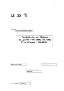 Machetti, Jacopo (A.A. 2024/2025) Decolonization and diplomacy: the Algerian war and the fall of the French empire (1954–1962). Tesi di Laurea in History of international relations, Luiss Guido Carli, relatore Maria Elena Cavallaro, pp. 79. [Master's Degree Thesis]