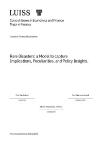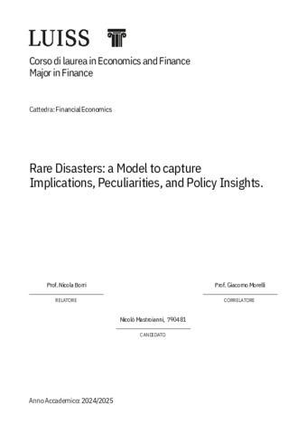 Mastroianni, Nicolò (A.A. 2024/2025) Rare disasters: a model to capture implications, peculiarities and policy insights. Tesi di Laurea in Financial economics, Luiss Guido Carli, relatore Nicola Borri, pp. 83. [Master's Degree Thesis]