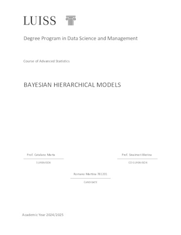 Romano, Martina (A.A. 2024/2025) Bayesian hierarchical models. Tesi di Laurea in Advanced statistics, Luiss Guido Carli, relatore Marta Catalano, pp. 65. [Master's Degree Thesis]