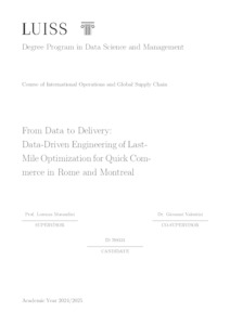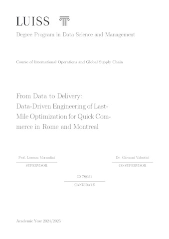 Paquette, David (A.A. 2024/2025) From data to delivery: data-driven engineering of last-mile optimization for quick commerce in Rome and Montreal. Tesi di Laurea in International operations and global supply chain, Luiss Guido Carli, relatore Lorenza Morandini, pp. 80. [Master's Degree Thesis]