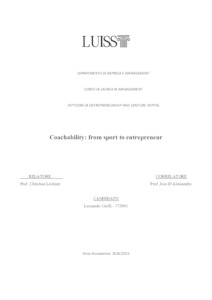 Ciolfi, Leonardo (A.A. 2024/2025) Coachability: from sport to entrepreneur. Tesi di Laurea in Entrepreneurship and venture capital, Luiss Guido Carli, relatore Christian Lechner, pp. 43. [Master's Degree Thesis]