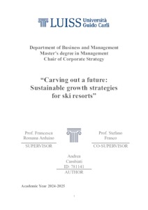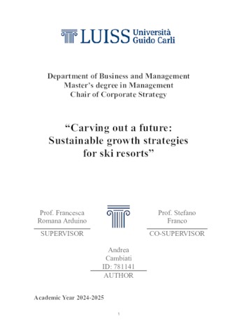 Cambiati, Andrea (A.A. 2024/2025) Carving out a future: sustainable growth strategies for ski resorts. Tesi di Laurea in Corporate strategy, Luiss Guido Carli, relatore Francesca Romana Arduino, pp. 73. [Master's Degree Thesis]