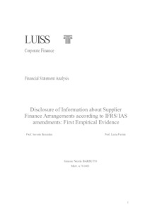 Barbuto, Simone Nicola (A.A. 2024/2025) Disclosure of information about supplier finance arrangements according to IFRS/IAS amendments: first empirical evidence. Tesi di Laurea in Financial statement analysis, Luiss Guido Carli, relatore Saverio Bozzolan, pp. 97. [Master's Degree Thesis]