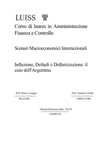 Martorano, Orlando (A.A. 2024/2025) Inflazione, default e dollarizzazione: il caso dell'Argentina. Tesi di Laurea in Scenari macroeconomici internazionali, Luiss Guido Carli, relatore Mauro Visaggio, pp. 108. [Master's Degree Thesis]