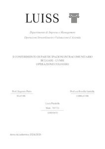 Piantella, Luca (A.A. 2024/2025) Il conferimento di partecipazioni intracomunitario Bulgari-LVMH: operazione Colosseo. Tesi di Laurea in Operazioni straordinarie e valutazione d'azienda, Luiss Guido Carli, relatore Eugenio Pinto, pp. 99. [Master's Degree Thesis]