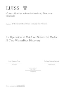 Realmuto, Lorenzo (A.A. 2024/2025) Le operazioni di M&A nel settore dei media: il caso WarnerBros. Discovery. Tesi di Laurea in Operazioni straordinarie e valutazione d'azienda, Luiss Guido Carli, relatore Eugenio Pinto, pp. 86. [Master's Degree Thesis]