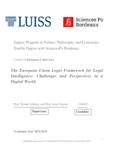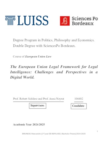 Bruneau, Alessandro Jean-Baptiste Franco (A.A. 2024/2025) The European Union legal framework for legal intelligence: challenges and perspectives in a digital world. Tesi di Laurea in European union law, Luiss Guido Carli, relatore Robert Schuetze, pp. 71. [Bachelor's Degree Thesis]