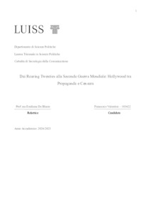 Valentini, Francesco (A.A. 2024/2025) Dai roaring twenties alla seconda guerra mondiale: Hollywood tra propaganda e censura. Tesi di Laurea in Sociologia della comunicazione, Luiss Guido Carli, relatore Emiliana De Blasio, pp. 61. [Bachelor's Degree Thesis]