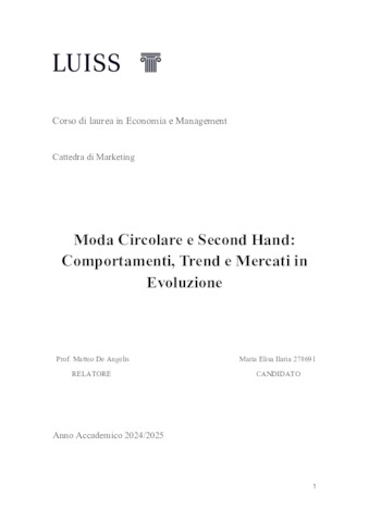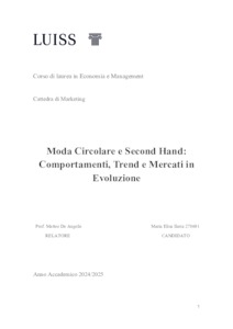 Ilaria, Maria Elisa (A.A. 2024/2025) Moda circolare e second hand: comportamenti, trend e mercati in evoluzione. Tesi di Laurea in Marketing, Luiss Guido Carli, relatore Matteo De Angelis, pp. 89. [Bachelor's Degree Thesis]