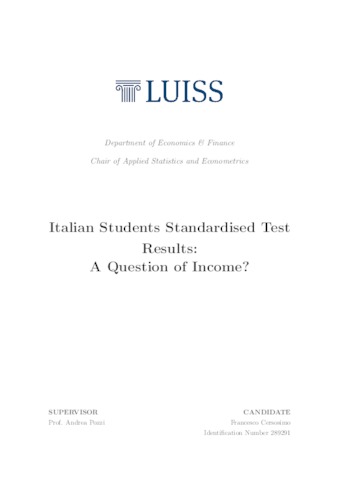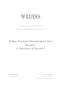 Cerosimo, Francesco (A.A. 2024/2025) Italian students standardised test results: a question of income? Tesi di Laurea in Applied statistics and econometrics, Luiss Guido Carli, relatore Andrea Pozzi, pp. 84. [Bachelor's Degree Thesis]