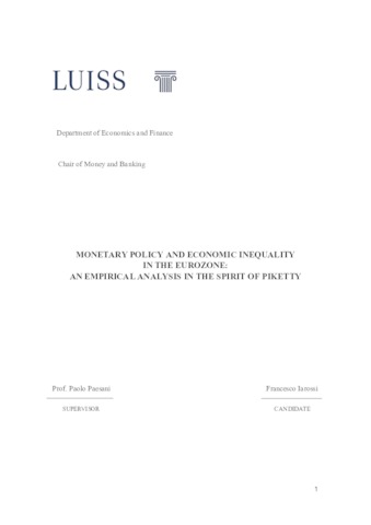 Iarossi, Francesco (A.A. 2024/2025) Monetary policy and economic inequality in the eurozone: an empirical analysis in the spirit of Piketty. Tesi di Laurea in Money and banking, Luiss Guido Carli, relatore Paolo Paesani, pp. 54. [Bachelor's Degree Thesis]