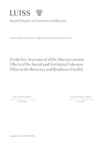 Pierotti, Francesco (A.A. 2024/2025) Predictive assessment of the macroeconomic effects of the social and territorial cohesion pillar in the recovery and resilience facility. Tesi di Laurea in Macroeconomics, Luiss Guido Carli, relatore Giovanna Vallanti, pp. 29. [Bachelor's Degree Thesis]