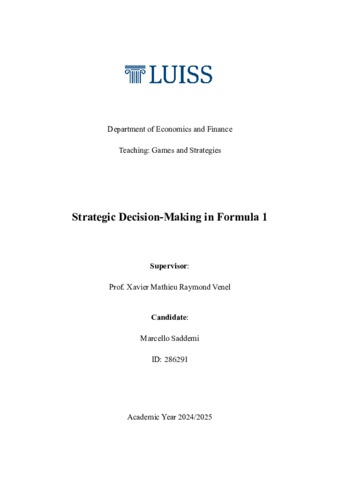 Saddemi, Marcello (A.A. 2024/2025) Strategic decision-making in Formula 1. Tesi di Laurea in Games and strategies, Luiss Guido Carli, relatore Xavier Mathieu Raymond Venel, pp. 58. [Bachelor's Degree Thesis]
