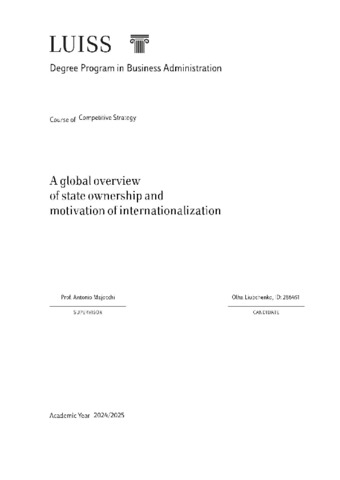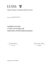 Liubchenko, Olha (A.A. 2024/2025) A global overview of State ownership and motivation of internationalization. Tesi di Laurea in Competitive strategy, Luiss Guido Carli, relatore Antonio Majocchi, pp. 64. [Bachelor's Degree Thesis]