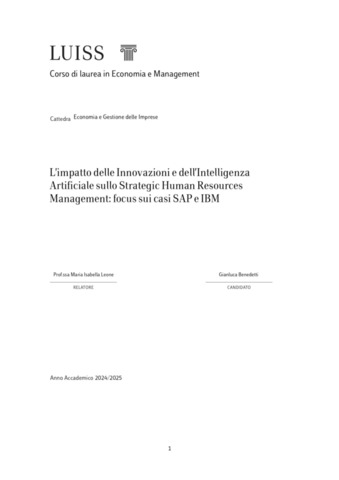 Benedetti, Gianluca (A.A. 2024/2025) L'impatto delle innovazioni e dell'intelligenza artificiale sullo strategic human resources management: focus sui casi SAP e IBM. Tesi di Laurea in Economia e gestione delle imprese, Luiss Guido Carli, relatore Maria Isabella Leone, pp. 81. [Bachelor's Degree Thesis]