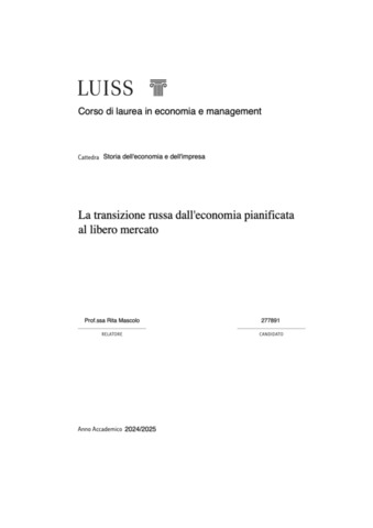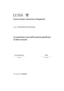 Cicardo, Andrea (A.A. 2024/2025) La transizione russa dall'economia pianificata al libero mercato. Tesi di Laurea in Storia dell'economia e dell'impresa, Luiss Guido Carli, relatore Rita Mascolo, pp. 98. [Bachelor's Degree Thesis]