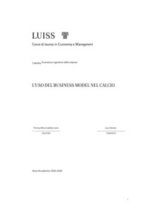 Daniele, Luca (A.A. 2024/2025) L'uso del business model nel calcio. Tesi di Laurea in Economia e gestione delle imprese, Luiss Guido Carli, relatore Maria Isabella Leone, pp. 92. [Bachelor's Degree Thesis]