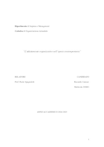 Caranci, Riccardo (A.A. 2024/2025) L’adattamento organizzativo nell’epoca contemporanea. Tesi di Laurea in Organizzazione aziendale, Luiss Guido Carli, relatore Paolo Spagnoletti, pp. 103. [Bachelor's Degree Thesis]