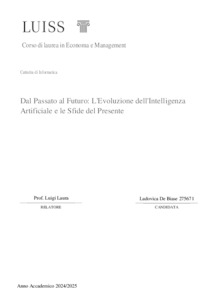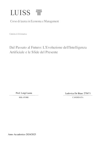 De Biase, Ludovica (A.A. 2024/2025) Dal passato al futuro: l'evoluzione dell'intelligenza artificiale e le sfide del presente. Tesi di Laurea in Informatica, Luiss Guido Carli, relatore Luigi Laura, pp. 70. [Bachelor's Degree Thesis]