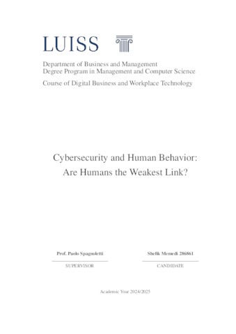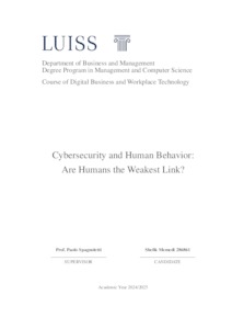 Memedi, Shefik (A.A. 2024/2025) Cybersecurity and human behavior: are humans the weakest link? Tesi di Laurea in Digital business and workplace technology, Luiss Guido Carli, relatore Paolo Spagnoletti, pp. 67. [Bachelor's Degree Thesis]