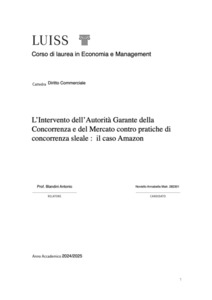 Noviello, Annabella (A.A. 2024/2025) L'intervento dell'autorità garante della concorrenza e del mercato contro pratiche di concorrenza sleale: il caso Amazon. Tesi di Laurea in Diritto commerciale, Luiss Guido Carli, relatore Antonio Blandini, pp. 61. [Bachelor's Degree Thesis]