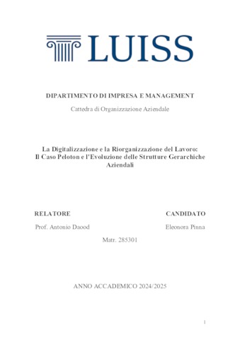 Pinna, Eleonora (A.A. 2024/2025) La digitalizzazione e la riorganizzazione del lavoro: il caso Peloton e l'evoluzione delle strutture gerarchiche aziendali. Tesi di Laurea in Organizzazione aziendale, Luiss Guido Carli, relatore Antonio Daood, pp. 72. [Bachelor's Degree Thesis]