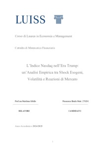 Braile, Francesca (A.A. 2024/2025) L’indice Nasdaq nell’era Trump: un’analisi empirica tra shock esogeni, volatilità e reazioni di mercato. Tesi di Laurea in Matematica finanziaria, Luiss Guido Carli, relatore Marilena Sibillo, pp. 148. [Bachelor's Degree Thesis]