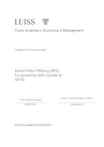Calicchia, Valerio (A.A. 2024/2025) Initial public offering (IPO): la quotazione delle aziende al NYSE. Tesi di Laurea in Finanza aziendale, Luiss Guido Carli, relatore Roberto Mazzei, pp. 57. [Bachelor's Degree Thesis]